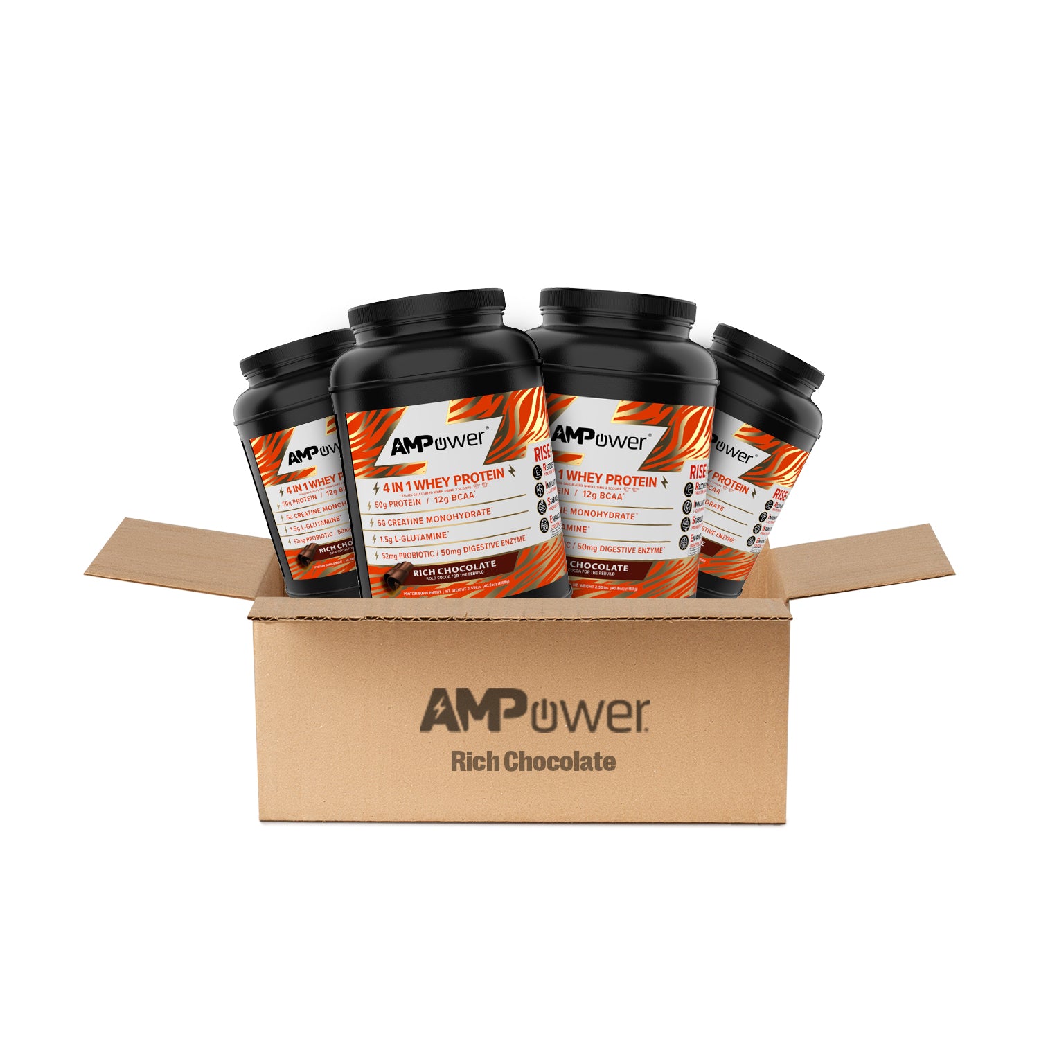 Partner With UsBoost your performance with AMPOWER Whey Protein, a premium 4-in-1 formula designed to support muscle growth, brain focus, immunity, and gut health. Available in Rich Chocolate, Chocolate Peanut Butter, and Vanilla Beans, each case delivers high-quality whey protein, BCAAs, creatine, glutamine, probiotics, and digestive enzymes. Perfect for athletes, fitness enthusiasts, and anyone seeking a science-backed protein supplement. Enjoy free shipping on all orders, subscription savings, and a 30-day money-back guarantee. Experience the RISE System by Ampower – fuel, recover, and perform better every day.